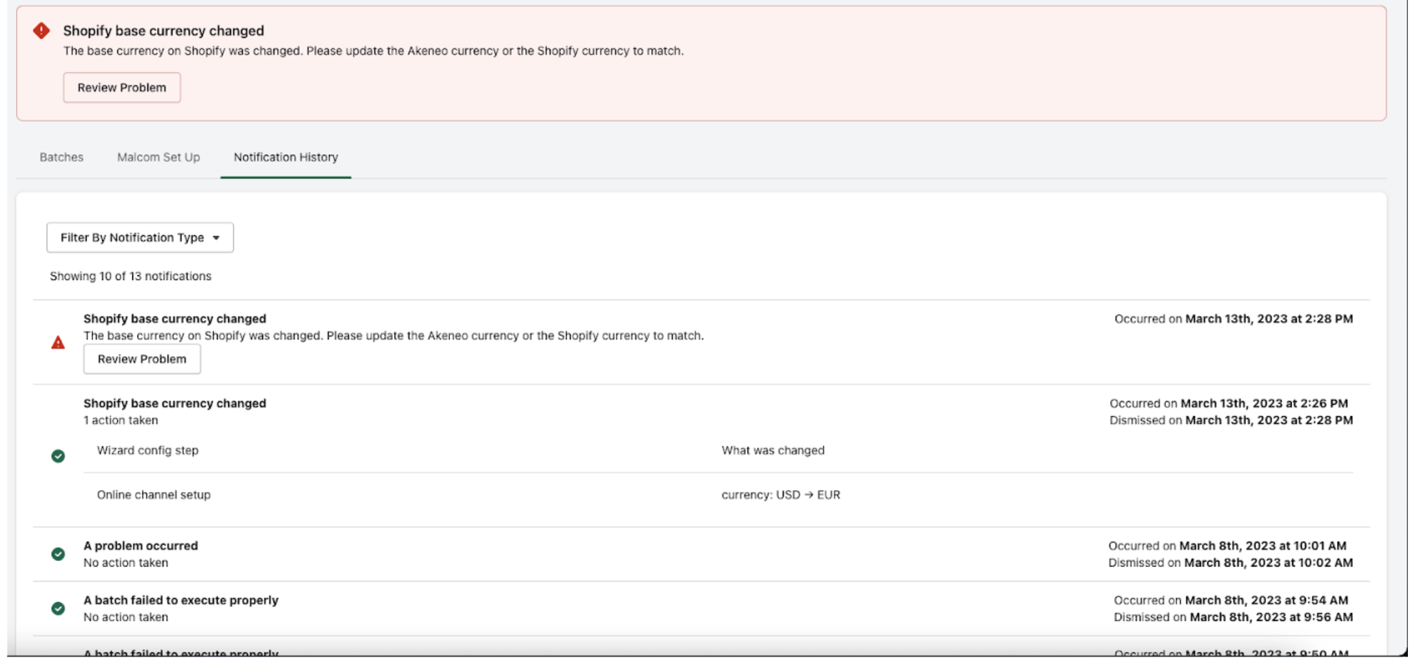 Malcom will display a list of all notifications and actions at the top of your screen within the app and also maintain a history within the “Notifications History” tab.