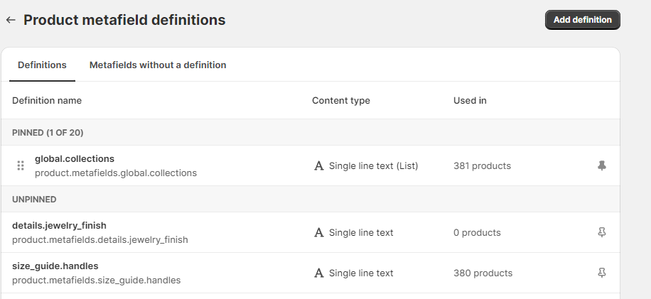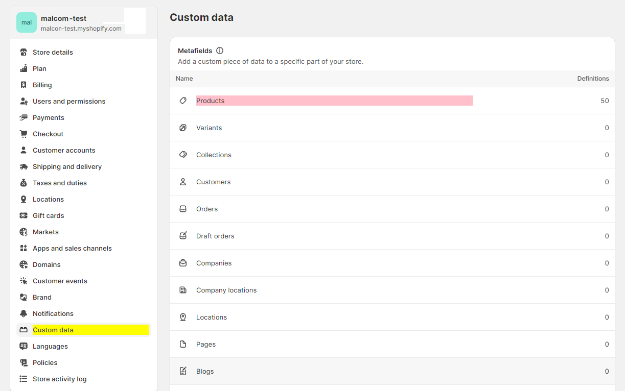 When Malcom is installed and linked to Akeneo, the app will pull your Akeneo attributes and map them to their corresponding Shopify metafields.